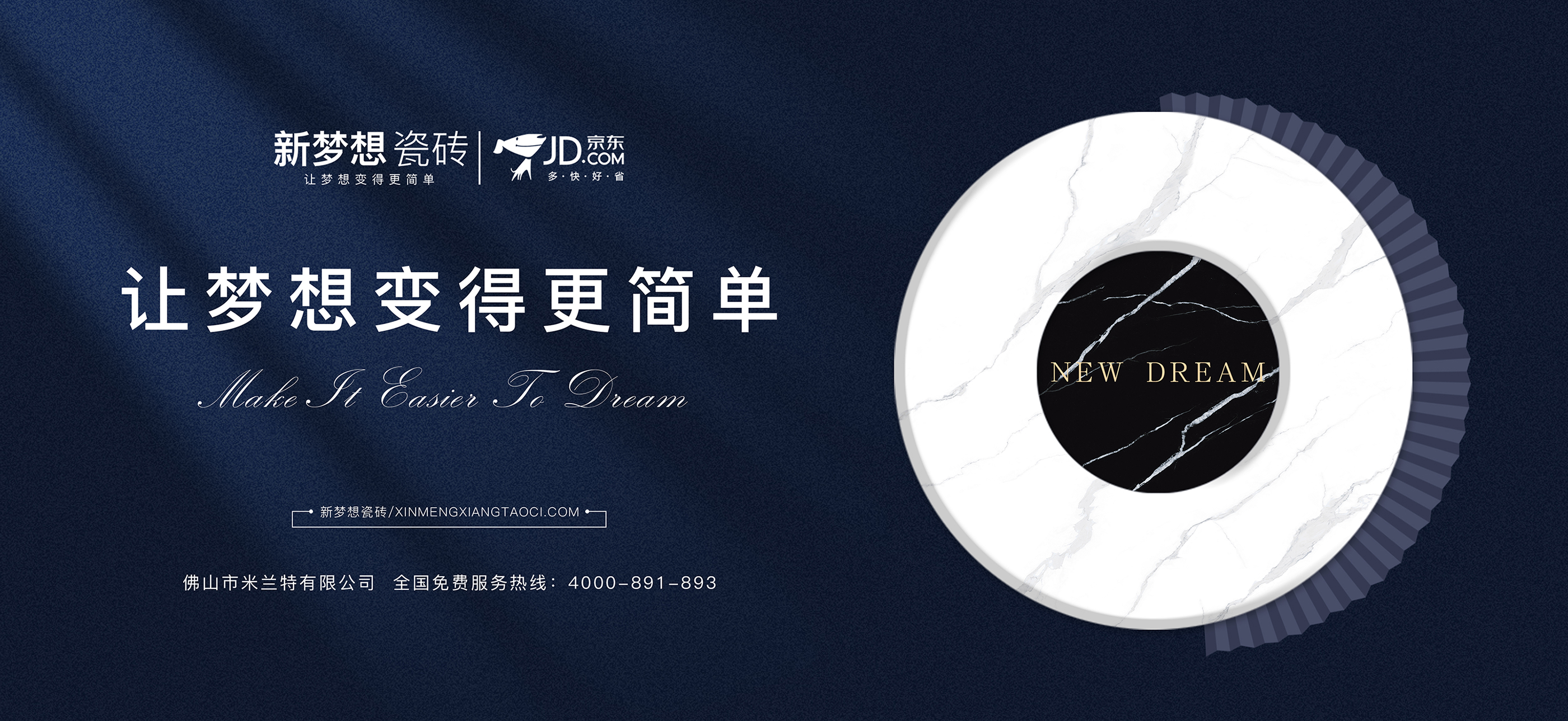 新梦想瓷砖,是佛山市米兰特陶瓷有限公司旗舰品牌,始创于2016年。新梦想瓷砖以“让梦想变得更简单”为品牌哲学,倡导“奋斗•科技•分享”的新时代价值观,共享科技智造成果,梦想生活触手可及。新梦想瓷砖是迅速崛起的年轻化瓷砖品牌。