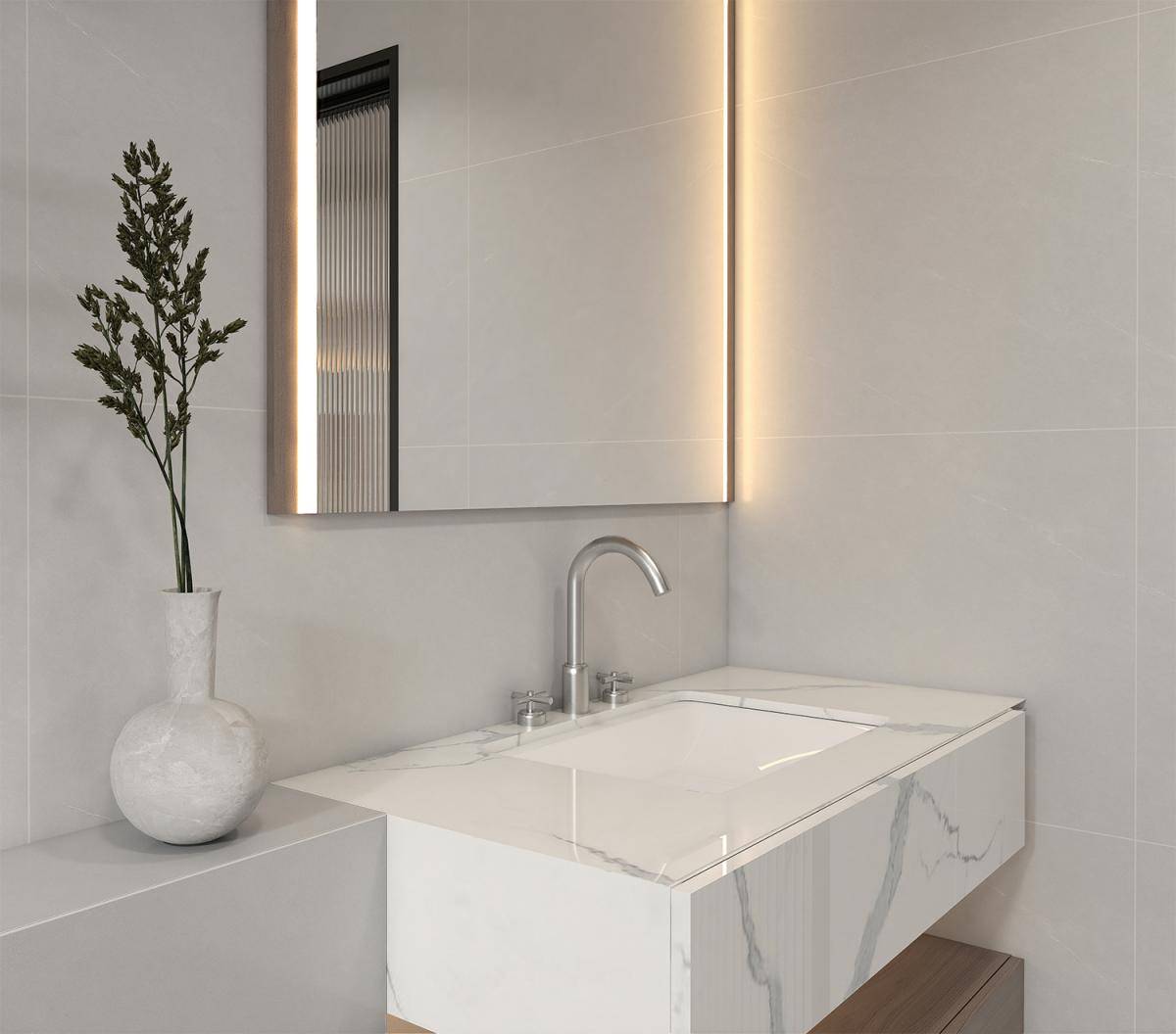 将丝滑柔软的触感融入瓷砖的表面,细腻的工艺提升了空间的质感。搭配20°的柔光设计,光线温和而细腻,避免了任何光污染,展现出简约而不失高雅的视觉效果。还原最纯粹的设计理念,创造一个简洁、优雅的生活空间。
